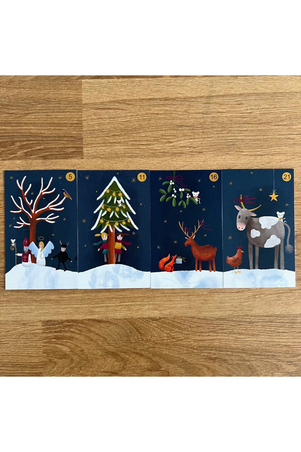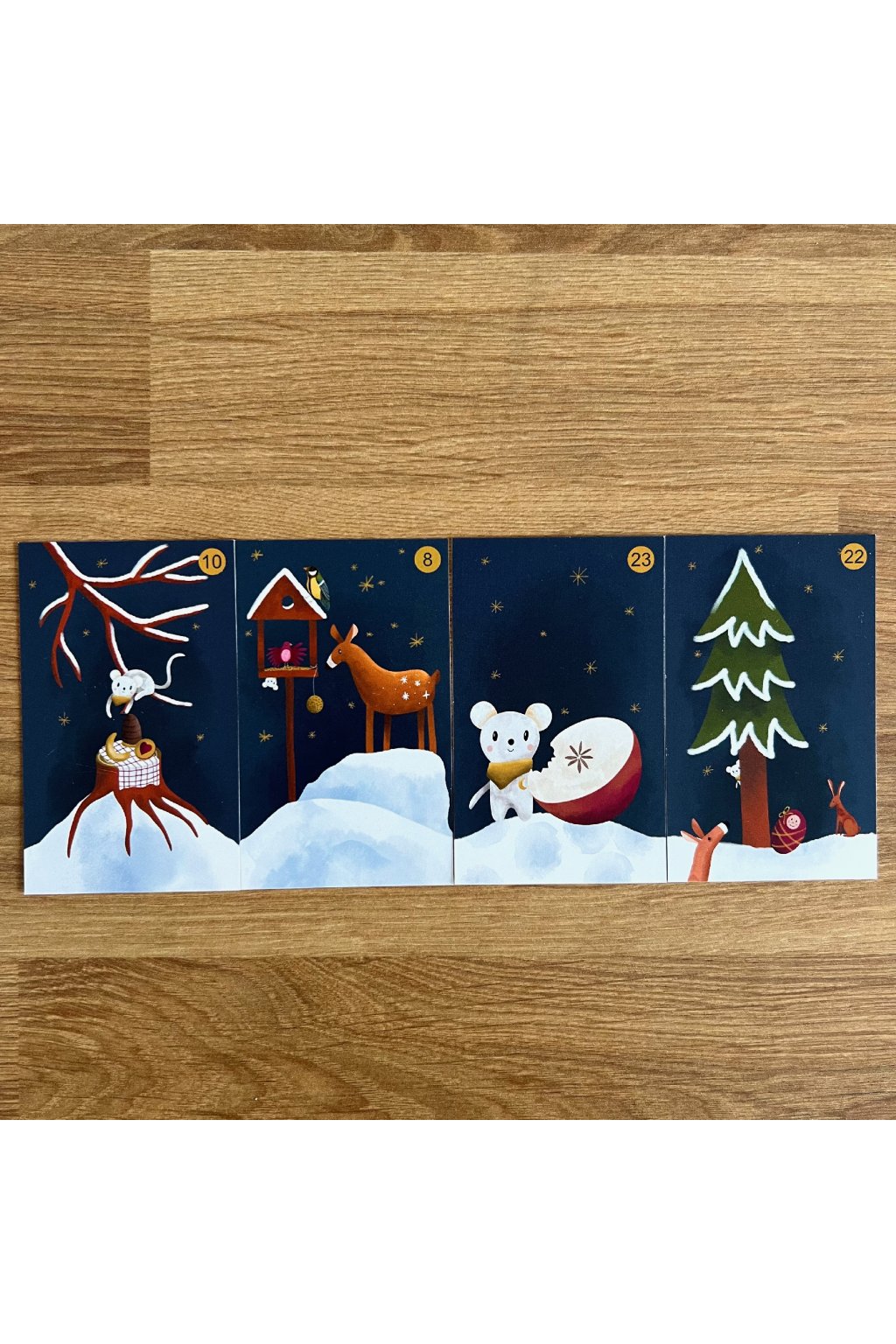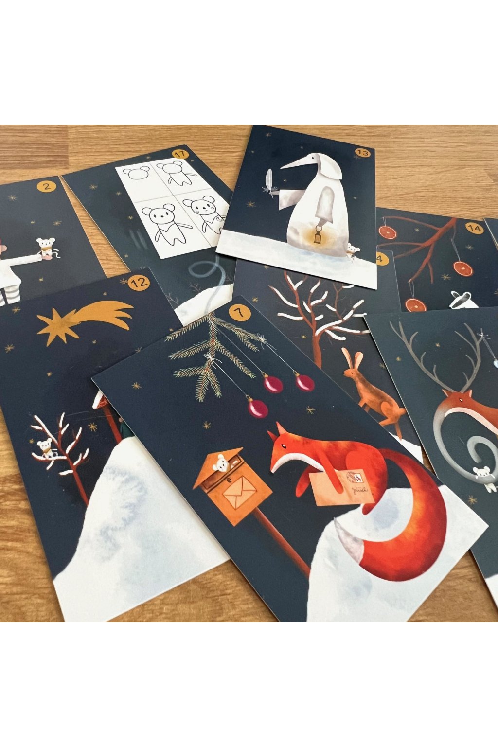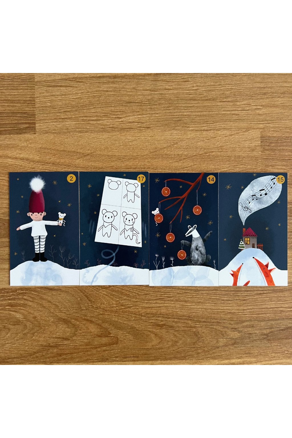 Sada obsahuje 25 kartiček s adventní a vánoční tematikou. Autorkou nápadu a textů je Bára Pallová, která tvoří pod značkou Lesito a autorkou ilustrací jsem já.